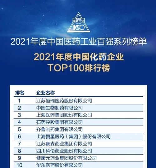此前,AG真人平台医药已经连续多年入选“中国化药企业TOP100排行榜”,自2018年起名列首位,今年再度蝉联榜首。