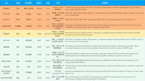 在胸腺上皮肿瘤、头颈鳞癌、肉瘤、前列腺癌、甲状腺癌等其他多个疾病领域,卡瑞利珠单抗、阿帕替尼、瑞维鲁胺、阿得贝利单抗、法米替尼、HRS-7058、HRS-4642、HRS-5041等抗肿瘤创新药相关研究一共入选了4项口头报告、1项简短口头报告、5项壁报,彰显了AG真人平台医药强大的研发实力。此外,海曲泊帕和昂丹司琼口溶膜分别在防治化疗导致的血小板减少和恶心呕吐方面各有1项研究入选壁报。