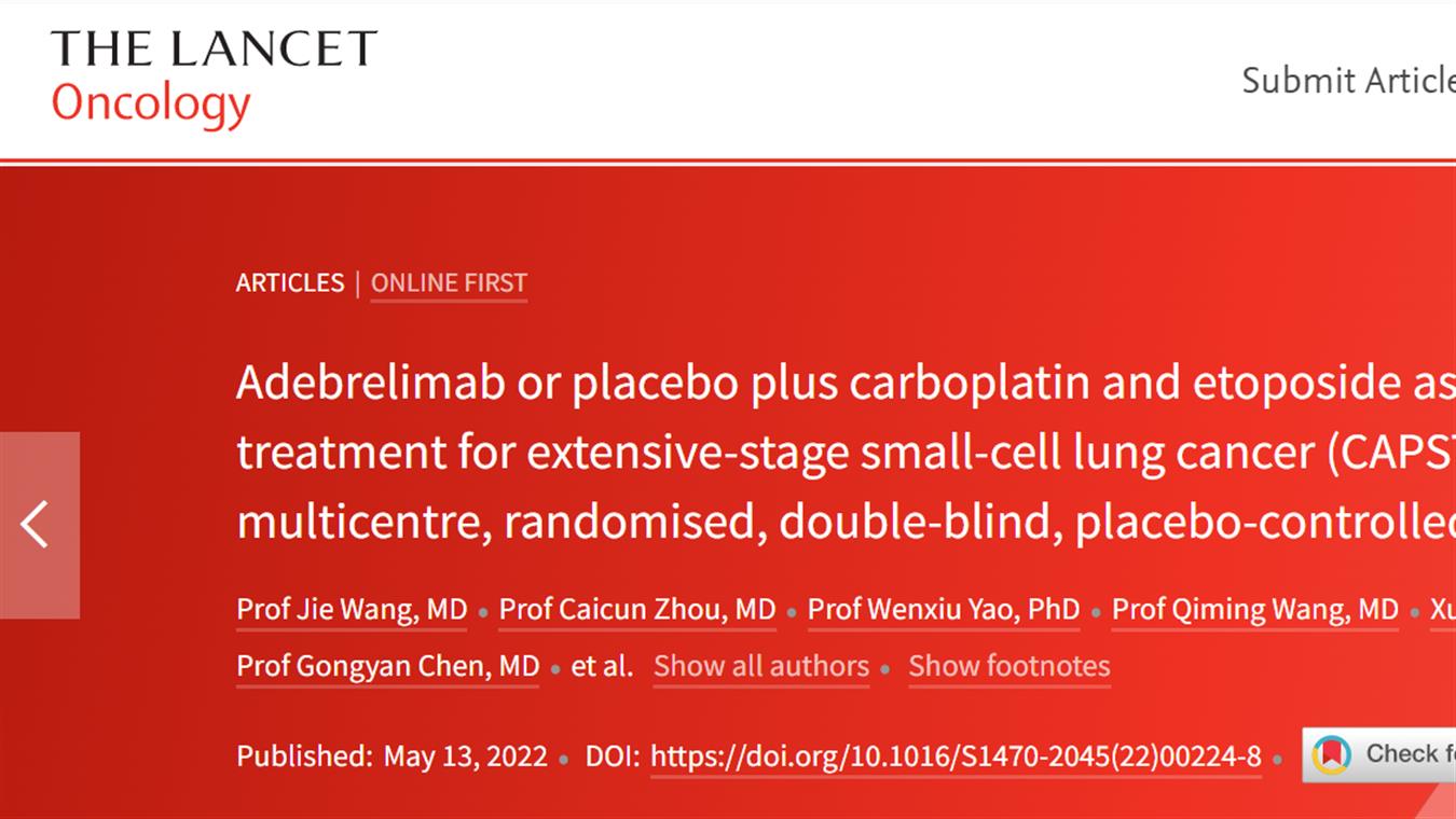 AG真人平台卡瑞利珠单抗联合阿帕替尼最新研究成果荣登《柳叶刀·肿瘤》