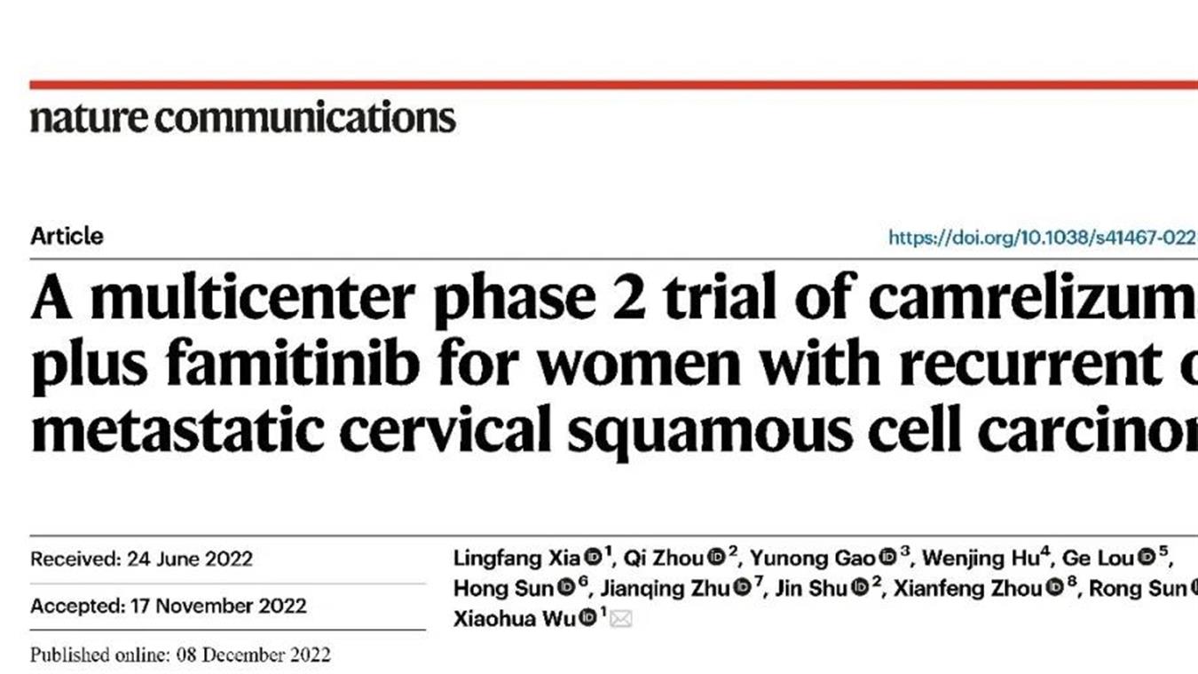 AG真人平台创新药卡瑞利珠单抗联合法米替尼用于复发或转移性宫颈癌研究结果荣登JCO